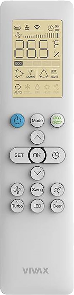 Висока ефикасност, прикажување на самодијагноза, индикатор за истекување на гасот за разладување, 1W standby, турбо, заштита на вентил на надворешна единица, интелегентно отопување, 12 Fan Speed, безшумна опција, двосмерен одвод на кондензат, дигитален екран. |